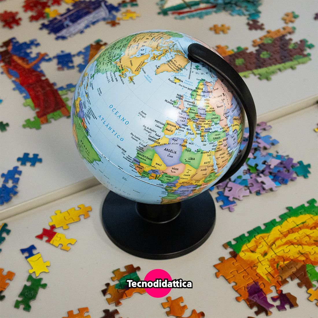 - Pequeno globo terrestre de 16 cm não iluminado, com cartografia clássica National Geographic, apresentando de forma clara os continentes e oceanos;