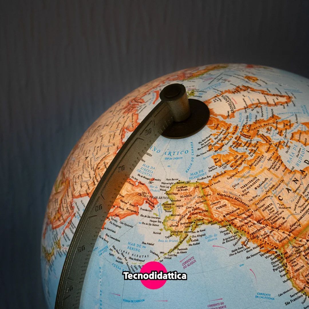- Iluminação interna suave LED/220V, permite visualizar detalhes cartográficos com clareza tanto de dia como à noite, tornando o globo simultaneamente uma fonte de conhecimento e uma sofisticada peça decorativa;