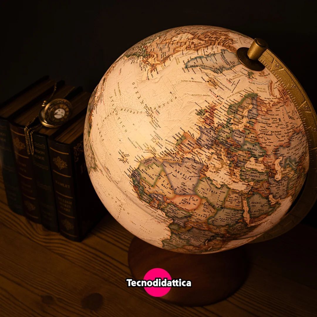 - Sistema de iluminação interna eficiente, ideal para criar ambientes acolhedores e exibir os pormenores cartográficos em qualquer contexto, seja como jogo de luz ou ferramenta pedagógica;